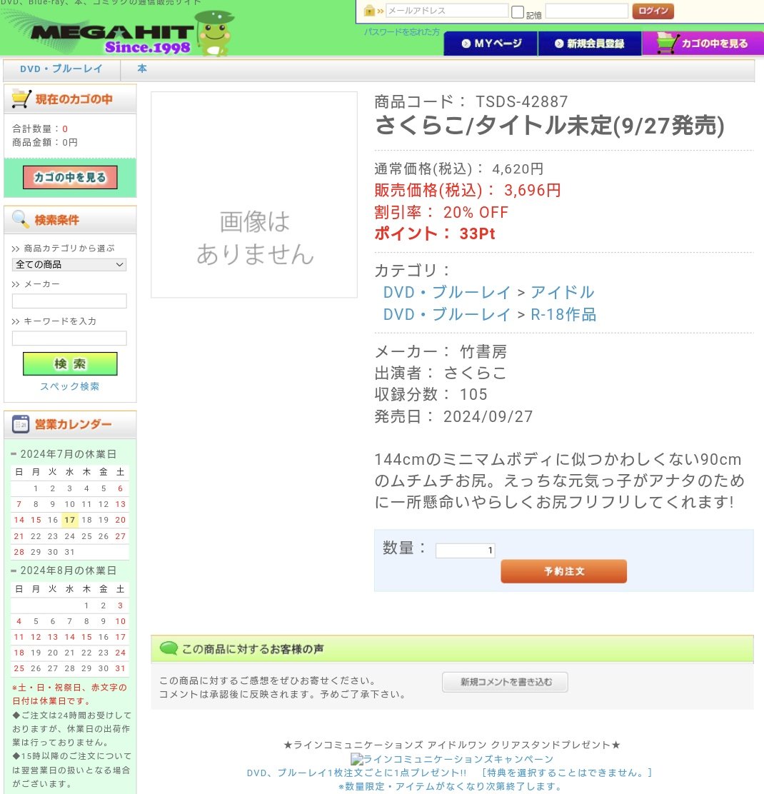 さくらこちゃんご本人は撮影を拒否しているのですが、未だメガヒットでは取り下げられていません(R6.8/3現在)。発売するの?